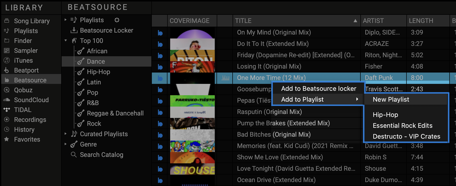 - Right-Click on the track and select “Add to Beatsource locker”.