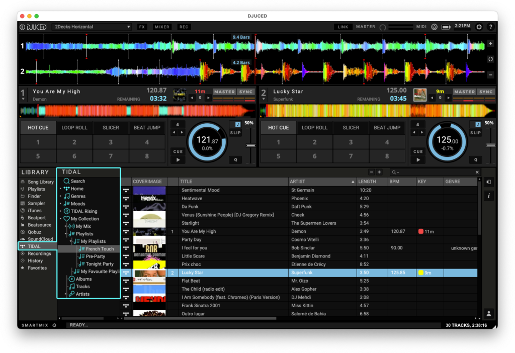 Organize your playlists from the TIDAL phone or desktop app, then the next time you open DJUCED, they’ll be ready for you to DJ with.