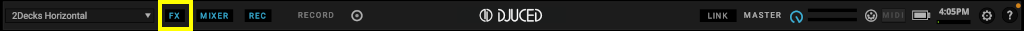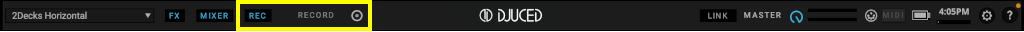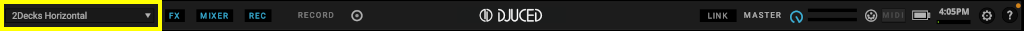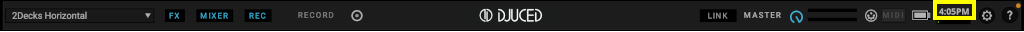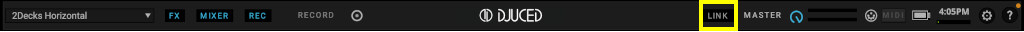 Le logiciel compatible Link restera au tempo et synchronisé avec la platine MASTER jouée dans DJUCED. Si vous changez le TEMPO de la piste MASTER en cours de lecture, tous les logiciels compatibles Link suivront le changement et vice-versa.