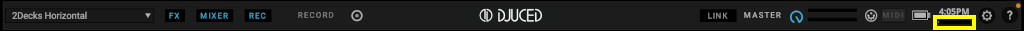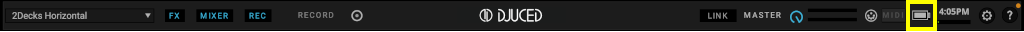 Lorsque le symbole MIDI clignote, cela indique que DJUCED reçoit des données d’un contrôleur MIDI.