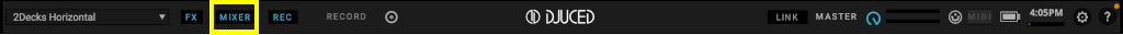La réserve de niveau du mixeur interne de DJUCED doit être soigneusement adaptée à votre configuration de mixage personnelle pour éviter l’écrêtage.