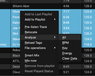 - Select the options for the analysis : All – BPM only – Key only – Energy only
