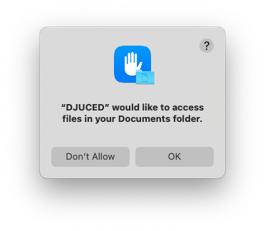 The first time you will install DJUCED on macOS, if your computer security and privacy settings are set by default, DJUCED can ask for the authorization to access :