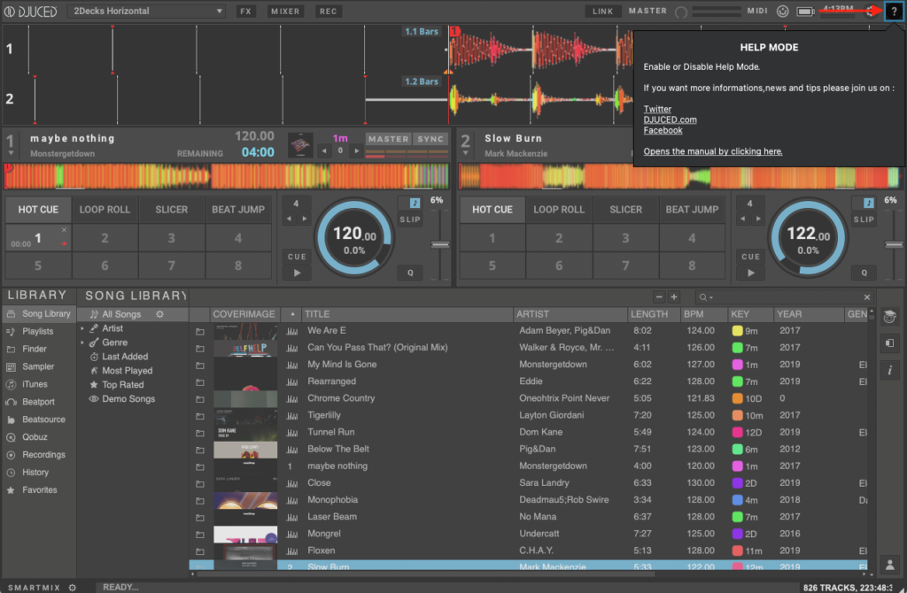 Just activate the “Question Mark” button on the top right of the DJUCED Interface and mouse over any element on the interface you want to know more about.