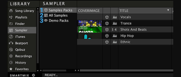 1. Samples Packs: this category regroups all the Samples Packs you imported or Saved.