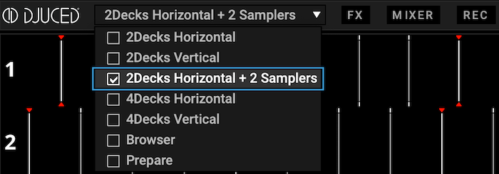 Note: DJUCED will Display 4 – 8 or 16 sampler slots depending on your connected controller.