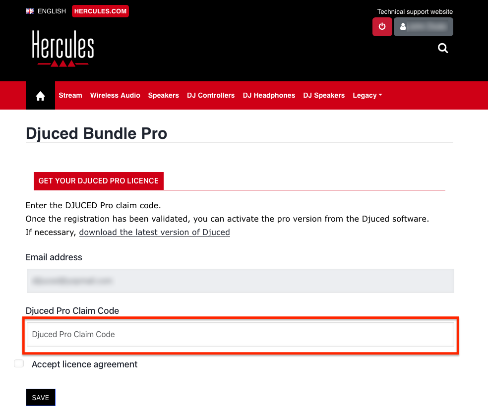 3. Enter your DJUCED PRO code in DJUCED PRO Claim Code.