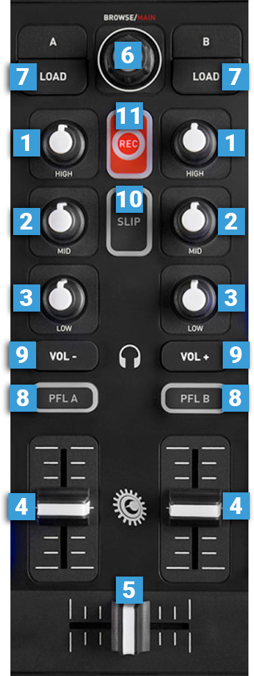 | 4 – Volume | Adjust the volume of the Left/Right deck. | Volume on Decks 3/4 |