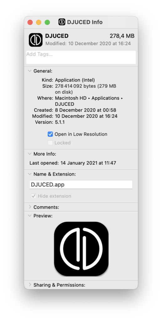 DJUCED uses the Internal or Dedicated graphic card (if available) on your MacBook Laptop to display HD beautiful graphics and High resolution waveform.