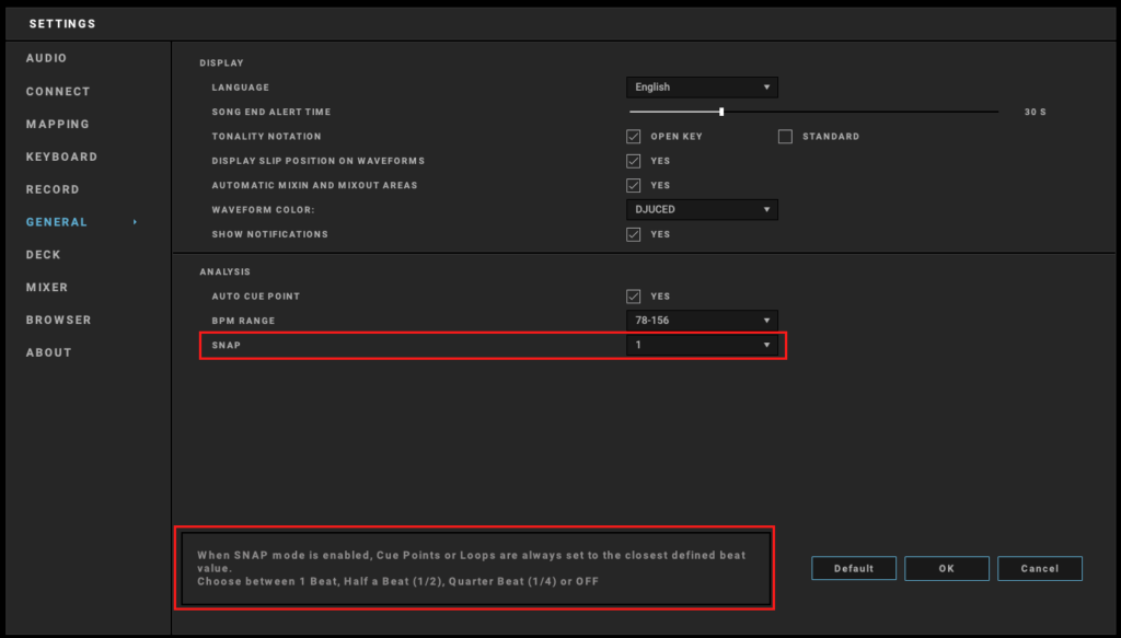 Thanks to SNAP, loops begin and end perfectly in rhythm and the CUE points position themselves perfectly in time.