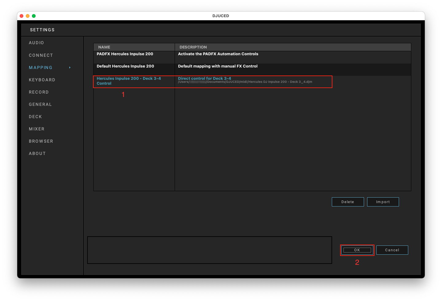 Once you have imported your mapping file(s), connect your controller(s) and start DJUCED.